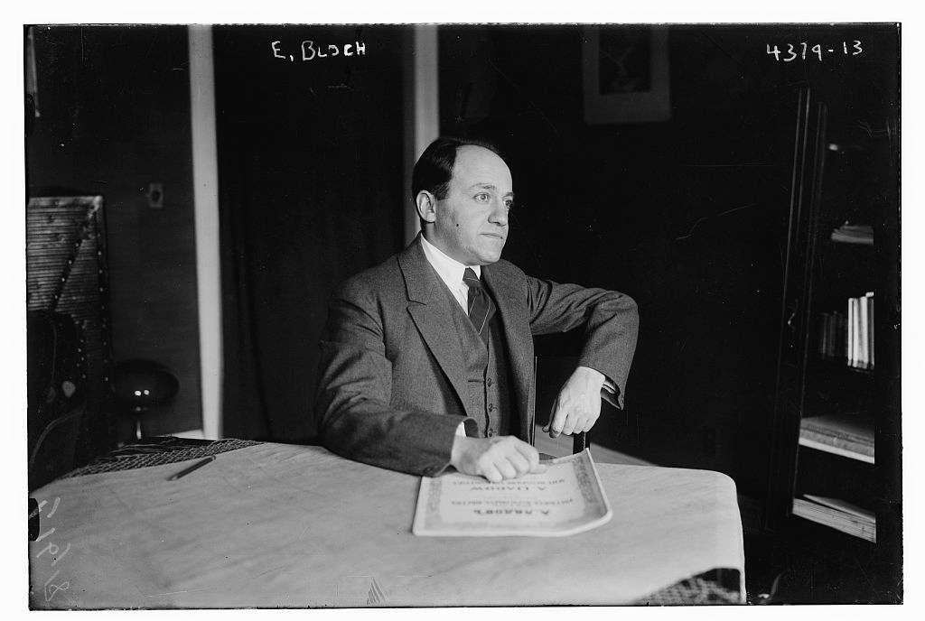 Comblé d’honneurs et lauréat de nombreux prix, Ernest Bloch a fortement marqué la vie musicale américaine de son temps; il y est généralement considéré comme le quatrième «B» après Bach, Beethoven et Brahms. S’il est, de nos jours, un compositeur reconnu aux États-Unis, ses œuvres sont, par contre, très largement oubliées en Europe. Sa première période créatrice, d’inspiration nettement postromantique (Debussy, R. Strauss, Mahler, Bruckner, etc.), culmina avec la création de son opéra Macbeth. Il composa ensuite une série d’œuvres inspirées par la foi hébraïque, connue sous le nom de «cycle juif», parmi lesquelles figurent les 3 Poèmes juifs pour orchestre (1913), la rhapsodie hébraïque pour violoncelle et orchestre Schelomo (1915-16), la Symphonie n°2 «Israël» pour 5 voix solistes et orchestre (1912-1916), Baal Schem (1923) pour violon et orchestre (ou piano) et Voix dans le désert pour orchestre avec violoncelle obligé (1936). Dans sa quête d’une musique hébraïque, Bloch a cherché à traduire l’identité profonde du peuple juif en incorporant dans ses compositions des éléments stylistiques de la musique traditionnelle juive, plutôt que des mélodies préexistantes, associés à sa sensibilité personnelle. Par la suite, sa musique s’est diversifiée du point de vue stylistique, perdant généralement de sa subjectivité et expérimentant avec des techniques de compositions d’avant-garde tels que l’emploi de quarts de ton ou de séries (dans les quintettes pour cordes). En tant que pédagogue, Bloch contribua largement à former une nouvelle génération de compositeurs américains, sans pour autant fonder de nouvelle école compositionnelle. Parmi ses nombreux élèves, on citera notamment Roger Sessions (1896-1985), Douglas Moore (1893-1969), Bernard Rogers (1893-1968), Randall Thompson (1899-1984), Jean Binet (1893-1960), Frederick Jacobi (1891-1952), Quincy Porter (1897-1966), Ernst Bacon (1898-1990), Herbert Elwell (1898-1974), Isadore Freed (1900-1960), Ray Green (1908-1997) et George Antheil (1900-1959). À côté de ses activités musicales, il s’adonna également durant toute sa vie à la photographie en tant qu’amateur.